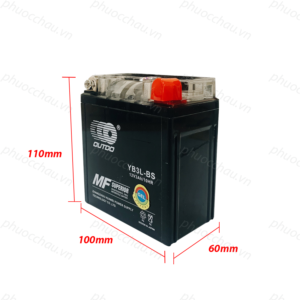 📌 Bình Ắc Quy OUTDO YB3L-BS 12V 3AH là ắc quy kín khí công nghệ GEL dành cho xe máy, miễn bảo dưỡng, không cần châm nước