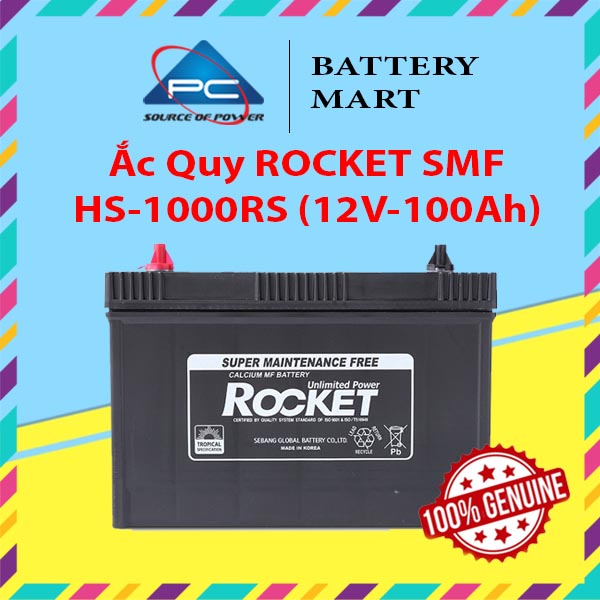► Ắc Quy ROCKET SMF HS-1000RS (12V-100Ah) (cọc vít) là ắc quy khô, kín khí (miễn bảo dưỡng).