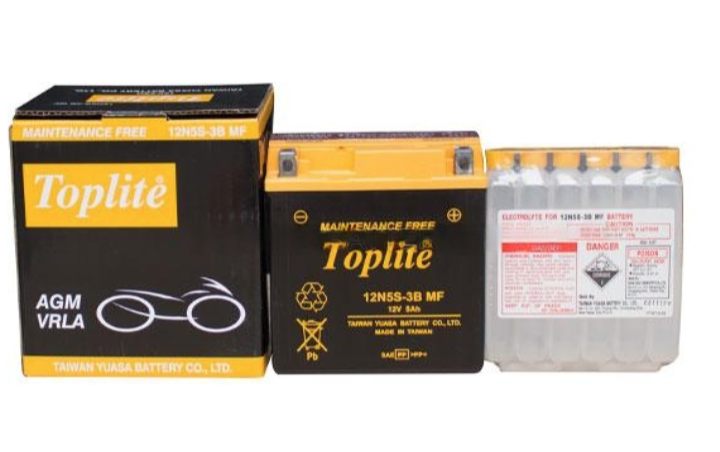 Ắc Quy Toplite 12N5S-3B (12V-5AH) là ắc quy miễn bảo dưỡng chuyên dùng cho xe máy