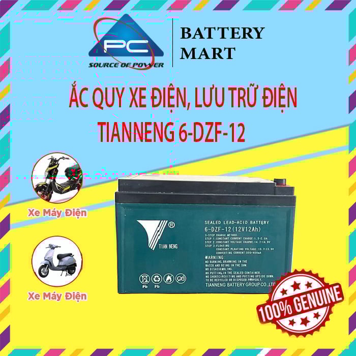- Ắc quy Thiên Năng (Tianneng) 6-DZF-12 (12V - 12Ah) là loại ắc quy GEL kín khí, không cần thêm nước hoặc axit trong khi sử dụng. Ắc quy kín khí là loại ắc quy bên trong được cấu tạo từ các sợi thủy tinh mao dẫn (absorb glass mass) nên khi hoạt động sẽ không thoát khí ra bên ngoài môi trường.