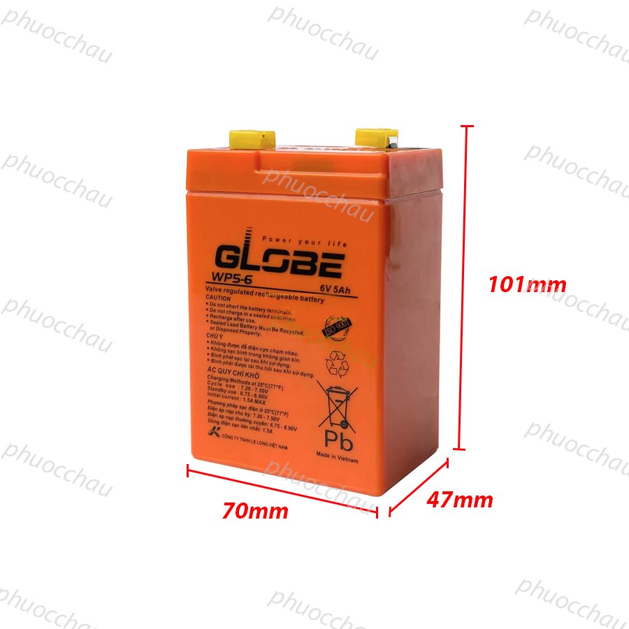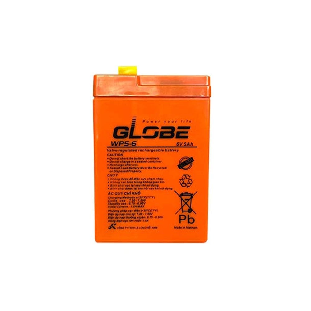 Ắc Quy GLOBE WP5-6 (6V-5AH) được thiết kế dành cho ứng dụng nguồn điện dự phòng cho an ninh hay hệ thống cảnh báo chữa cháy, ắc quy được sử dụng cho đèn thoát hiểm, tín hiệu cảnh báo, chiếu sáng, hay hệ thống bảo mật, nó vẫn có thể cho phép các hoạt động diễn ra liên tục trong một khoảng thời gian nhất định nếu thành phố bị mất điện lưới do hoả hoạn, động đất, nhằm đảm bảo an toàn cho tính mạng và tài sản của con người.