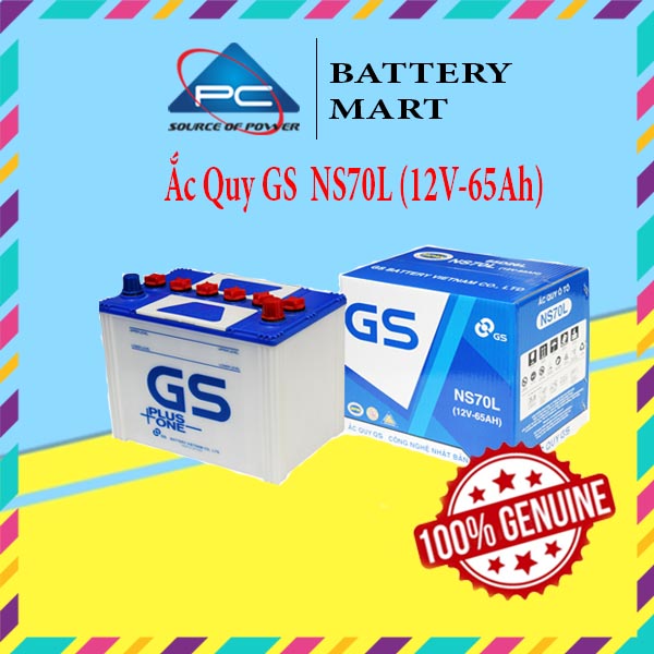 * Ắc Quy GS NS70 (12V-65AH) truyền thống hay còn gọi là ắc quy nước